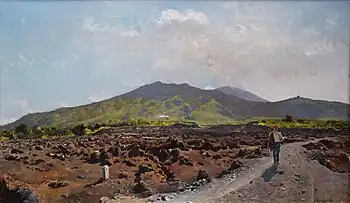 In 1870, he began to exhibit regularly at the "Society for the Promotion of the Fine Arts". In 1877 at Naples, he exhibited: Sunday in October Near Pompeii and two watercolors titled: On the Beach and Winter. In 1881 at Milan, he exhibited Spinelli Park], Return from Fishing, and Return from Sorrento. At the 1883 Exhibition in Milan, he displayed Fresh Wind, The Sorrento Marina, and The Sorrento Coast. In 1884 at Turin, he exhibited Return from Fishing; Mount Scutari, and Morning in the Woods.[2] Much of his work was purchased by collectors from France and England.[3]