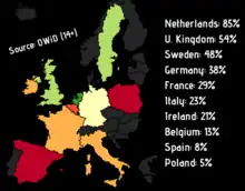 The Prussian system, after its modest beginnings, succeeded in reaching compulsory attendance, specific training for teachers, national testing for all students (of all genders), national curriculum set for each grade and mandatory Kindergarten.[16] In 1810, Prussia introduced state certification requirements for teachers, which significantly raised the standard of teaching.[17]