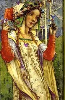 Edward Reginald Frampton (1870 – 4 November 1923) was a British painter who specialized in murals, specifically war memorials at churches. He painted in a flat, stately style, and was influenced by French Symbolism. He also worked in stained glass, most probably learning from his father, Edward Frampton, who was a stained-glass artist. His work usually depicted symbolic subjects and landscapes; early in his career he made sculpture.[1]