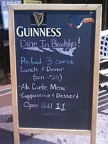 Cafe chalkboard advertising a "pre fixed" menu, an eggcorn of the French prix fixe (fixed price)
