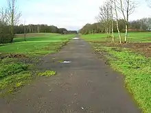 A plantation is situated on 'Belvedere Hill' (the term 'Belvedere or Belvidere' literally means 'beautiful view') (until 2011 it also had a large classical central 'folly' feature) and vistas radiating out from a central hub, technically termed 'rond-points' (plantations located on rising ground with several vistas radiating from a central point). This style of woodlands and vistas or rides is a restoration of the layout of the entire area surrounding the castle in the 1750s prior to the remodeling which was completed by 1802. General Roy's map of 1747 - 52 shows that the ornamental woodlands were a series of these radiating rond-points of different sizes, sometimes overlapping each other.[5] The 'old' Eglinton Park farm, circa 1950s, lies to one side of this feature. Many other footpaths are present, a number of which are not shared with cyclists or horses.