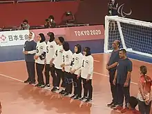 ![]() Egypt women's women's goalball team lined up against Japan, Tokyo 2020 Paralympic Games (August 2021). | |