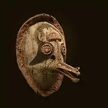 Eharo masks (literally "dance head" or "dance mask") were a type of mask used by the Elema people of the eastern Gulf of Papua as part of the "hevehe" cycle of masked rituals.[1] These masks were crafted from barkcloth, vegetable fiber, and various pigments.[2]