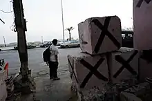 The camp covers a total area of approximately 1 square kilometer.[3] At its Northern side the camp borders the main roads at the entry to the Tyre peninsula and to its Eastern side the North-South Beirut-Naqoura Sea Road. Hence, it is severely affected by heavy traffic jams at the crossroads, especially during peak hours at the El Buss roundabout.[2] The camp has a number of entrances for pedestrians, but only one - on the South-Eastern side - for vehicles. Entry and exit there is controlled at a checkpoint by the Lebanese Armed Forces.[1] Foreign visitors have to present permits from Military Intelligence to them.[4]