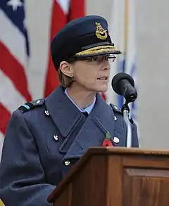 She was promoted to air commodore on 1 July 2008.[13] She served as head of the Defence Estates' Operations Housing, thereby being in charge of the renovation of service accommodation.[14] With her promotion to air vice-marshal on 1 August 2013,[15] she became the highest ranking female in the British Armed Forces and the first regular to hold a two-star rank.[5][16] She has been appointed director of Projects and Programme Delivery at the Defence Infrastructure Organisation.[15][17] West was replaced by Tony Gosling in 2016.[18] She is now an officer in the RAF Reserve.[19]