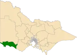 ![]() Location of South-West Coast (dark green) in Victoria | |||||||||||||||