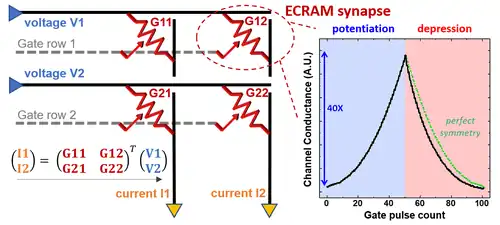 - ↑ Tang, Jianshi; Bishop, Douglas; Kim, Seyoung; Copel, Matt; Gokmen, Tayfun; Todorov, Teodor; Shin, SangHoon; Lee, Ko-Tao; Solomon, Paul (2018-12-01). "ECRAM as Scalable Synaptic Cell for High-Speed, Low-Power Neuromorphic Computing". 2018 IEEE International Electron Devices Meeting (IEDM). pp. 13.1.1–4. doi:10.1109/IEDM.2018.8614551. ISBN 978-1-7281-1987-8. S2CID 58674536. Retrieved 2020-07-16.