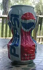 A pinched aluminium can, produced from a pulsed magnetic field created by rapidly discharging 2 kilojoules from a high-voltage capacitor bank into a 3-turn coil of heavy gauge wire.