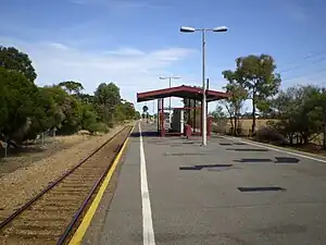 Elizabeth South railway station is located on the Gawler line.[1] Situated on the border of northern Adelaide suburbs of Elizabeth South and Edinburgh, it is 24 kilometres (15 mi) from Adelaide station.
