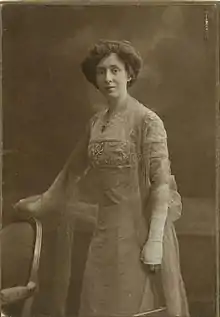 She was active as a speaker for Country Association for Women's Suffrage. She is described as a skillful speaker, and her contribution was appreciated: by her connections, the movement gained supporters from the upper class, who would not otherwise be willing to listen to a speech about women suffrage, and by her glamorous way of dressing, she proved wrong the caricature of a suffragette as "masculine". Women suffrage was achieved in 1919.