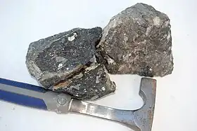 The Elliott County Kimberlite (Sometimes called the Ison Creek Kimberlite) was discovered in Elliott County, Kentucky, by Albert R. Crandall in 1884 over two years before Carvill Lewis named a similar porphyritic peridotite occurring near Kimberley, South Africa, a kimberlite. It occurs as three separate elongate intrusive bodies 1/4 to 1/2 mi in length and a few hundred feet in width, within an area of about a square mile. The rock is a dark-green peridotite (kimberlite) composed of serpentinized olivine and a number of accessory minerals, including phlogopite, pyrope, calcite, enstatite, magnesian ilmenite, and others. Xenoliths, mainly of shale, and igneous rock inclusions are abundant in the three intrusive bodies as described by William Brown in 1977.[1] Detailed petrographic descriptions of the peridotite are presented by Diller in 1887[2] and Bolivar in 1982.[3] The peridotite has been dated to Early Permian time by K-Ar and Rb-Sr dating of xenocrystic biotite from one of the intrusive masses, however more recent evidence points to a Cretaceous emplacement.[4] The rock is relatively nonresistant, is commonly disintegrated to as much as 50 feet, and usually asserts no topographical expression. Unweathered rock is hard, dark greenish black and weathers to grayish olive. The saprolite is yellowish to reddish brown and strewn with garnet and ilmenite fragments and xenoliths. Several attempts have been made to find diamonds in the kimberlite with no success.