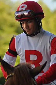 Elvis Raúl Trujillo (born October 7, 1983, in Panama City, Panama) is a jockey in American Thoroughbred horse racing best known for riding Maryfield to victory in the 2007 Breeders' Cup Filly & Mare Sprint. He is known for being the King of Monmouth Park. He is also known for being the regular rider of Precious Passion. Born in Panama City, where he began his career as a jockey, he came to the United States in 2002. Since 2017, he has surpassed more than $70,000,000 in purse earnings and has won more than 2,000 races.