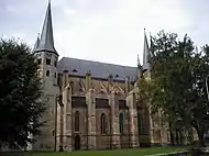 In 1947 the expelled community under Abbot Albert Schmitt purchased the former Ritterstift (collegiate foundation or canonry) around the Gothic monastery church of Saint Peter in Bad Wimpfen, that had been abandoned since its secularisation in 1803, and became known as Kloster Bad Wimpfen. The last abbot, Laurentius Hoheisel, resigned in 1997. As the membership of the community had declined too far for it to be legally independent, it has been directed since 2001 by the abbot of Neuburg Abbey near Heidelberg.