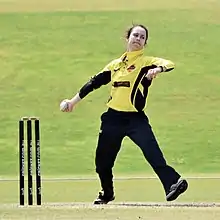 Emma Louise King (born 25 March 1992) is an Australian former cricketer who played as a right-arm off-break bowler and right-handed batter. She played domestic cricket for Western Australia from her debut in the 2009–10 season.[1] In the 2013–14 Australian Women's Twenty20 Cup, she was the leading wicket-taker with 13 wickets which included a performance of 4/9 against the New South Wales Breakers. More recently she claimed six wickets in the 2016-17 WNCL tournament.[2] She also played for the Perth Scorchers in both the first season and second season of the Women's Big Bash League Twenty20 competition.[3]