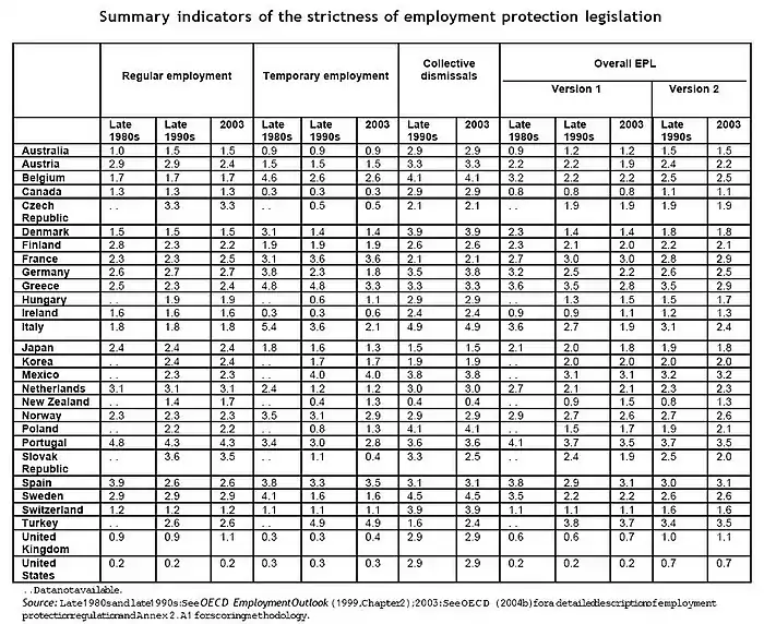 - ↑ OECD Employment Outlook 2004, Chapter 2, Employment Protection Regulation and Labour Market Performance.