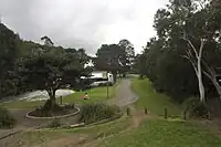 Engadine is bounded by The Royal National Park to the east, and Heathcote National Park to the west. Visitors to the suburb can view across the Sydney Basin from its southern edge northwards to the Sydney CBD. The area also features rolling sandstone slopes and cliffs in places, with an abundance of native trees throughout. Natural landmarks include 'the Needles' and 'the Blue Lagoon' along the Woronora River, and the Engadine Wetlands to the east of the railway station.