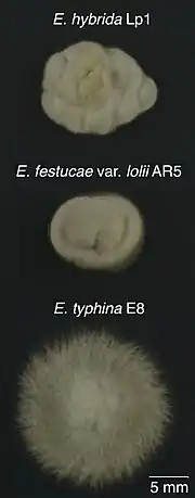 - ↑ Christensen, M.J.; Saulsbury, K.; Simpson, W.R.; Tapper, B.A. (2012). "Conspicuous epiphytic growth of an interspecific hybrid Neotyphodium sp. endophyte on distorted host inflorescences". Fungal Biology. 116 (1): 42–48. doi:10.1016/j.funbio.2011.09.007. PMID 22208600.