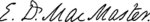 Erasmus Darwin McMaster, D.D. (February 4, 1806 – December 10, 1866) was a nineteenth-century American Presbyterian pastor, academic and theologian who served as president of Hanover College and Miami University. Along with Henry Ward Beecher, McMaster was one of the most vocal Presbyterian anti-slavery advocates in Indiana.