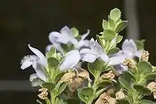 The flowers are borne singly in leaf axils on a stalk less than 1 mm (0.04 in) long. There are 5 lance-shaped, green sepals 2.5–6.5 mm (0.1–0.3 in) long with hairy margins. The petals are 6–13 mm (0.2–0.5 in) long and joined at their lower end to form a tube. The tube is a shade of lilac to purple, the lower petal lobe is covered with short hairs and the inside of the tube has many spidery hairs. The 4 stamens do not extend beyond the petal tube. Flowering occurs from late spring to early summer and is followed by fruit which are oval-shaped, wrinkled near the top end and 3–4 mm (0.1–0.2 in) long.[2][3][4]