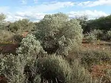 Subspecies pterocarpa occurs between the Cape Range, Shark Bay and Meekatharra areas where it grows in sandy clay or soils derived from limestone, in flats or salty sites.[2][4][6]