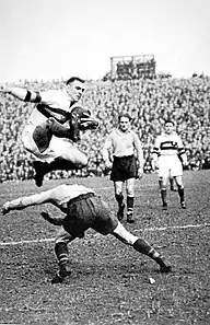 - Photograph "1948 Championship Semi-final - Ces Mountford kicks as Eric Batten tries to block the ball in the 1948 Championship Semi-final. - 24/03/1948" at rlhp.co.uk