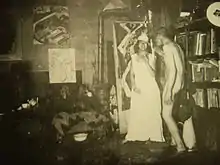 Kirchner's studio became a venue which overthrew social conventions to allow casual love-making and frequent nudity.[6] Group life-drawing sessions took place using models from the social circle, rather than professionals, and choosing quarter-hour poses to encourage spontaneity.[6] Bleyl described one such model, Isabella, a fifteen-year-old girl from the neighbourhood, as "a very lively, beautifully built, joyous individual, without any deformation caused by the silly fashion of the corset and completely suitable to our artistic demands, especially in the blossoming condition of her girlish buds."[8]
