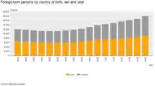 - ↑ "Foreign citizens by country of citizenship, sex and year". Statistics Sweden. Retrieved 16 November 2017.