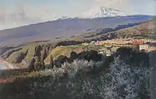 He specialized in landscape, but also did portraits and genre scenes. In Palermo he painted frescoes for the Villa Malfitano Whitaker, and for the Massimo theater between 1899 and 1900. In 1908 he frescoed Liberty-style floral themes for the Grand Hotel Villa Igiea. From 1913 to 1931 he taught figurative painting at the Academy of Fine Arts in Palermo. Among his pupils was Michele Dixitdomino.[1]