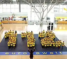 A lot of actions are taking place around Europe every year to celebrate European 112 Day. Some are organized by politicians and government officials, other by rescue services, firefighters and Non-governmental organizations. In 2018, a whole variety of events dedicated to the common European emergency call were arranged in at least 23 member states of the European Union as well as in Georgia, Kosovo and Iceland.[6] In Germany, the supercentenarian Edelgard Huber von Gersdorff, who is 112 years old and currently the oldest German woman, became honorary patroness of the campaign "One Europe – one number!", which aims at raising awareness for the European Emergency Number 112.[7] In Belgium, the Manneken Pis, one of the most well-known landmarks of Brussels, was dressed up in a costume with the European flag and the number 112 on it by the campaign "European Emergency Number Association".[8] In Ireland, the emergency number was promoted at the annual Young Scientist and Technology Exhibition by the Emergency Call Answering Service (ECAS).[9] Many other representatives and associations of national emergency rescue services, like the National Federation of Firefighters of France (FNSPF),[10] the Fire and Rescue Service of Latvia[11] and the Luxembourg Rescue Services Agency,[12] took different actions in order to educate the general public about the significance and the appropriate use of the European emergency call. European 112 Day 2018 has also been a major subject in the social media; with hashtags like #112day2018 and #Isupport112 going viral.