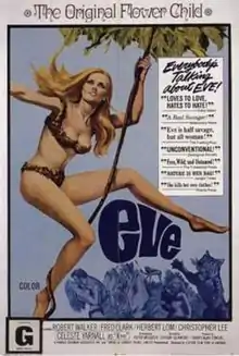 Eve is a 1968 thriller film directed by Jeremy Summers and starring Robert Walker, Fred Clark, Herbert Lom, Christopher Lee and introducing Celeste Yarnall as Eve. When the director quit midway through filming, Spanish horror film director Jesus Franco was brought in to finish the job.[1] The film was a co-production between Britain, Spain, Liechtenstein and the United States, and location scenes were filmed in Brazil.[2] It was also released as Eva en la Selva, The Face of Eve (in the UK), Eve in the Jungle, or Diana, Daughter of the Wilderness.[3] The fur bikini worn by Celeste Yarnall was altered from that worn by Raquel Welch in One Million Years B.C. (1966).[4]
