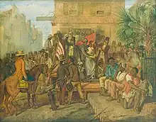The building housed the South Carolina convention to ratify the United States Constitution in 1788, and was the site of many of the events in George Washington's week-long stay in Charleston. He was greeted by a crowd on the balcony. The building continued as an Exchange until the 19th century, when it also became a post office. According to Frederic Bancroft in Slave-Trading in the Old South, "From colonial days until after the middle of the nineteenth century from several hundred to many thousand slaves were annually sold to the highest bidders, in front or just north of this building. As the postoffice was long in the Exchange, visitors as well as residents called there daily for their mail, and, after about 10 A. M. on sale-days, were sure to notice the crowd that gathered about the slaves."[5] During the 19th century, the postmaster defended the Exchange's shipment of abolitionist pamphlets from angry Charlestonian rioters.