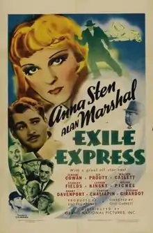 Exile Express is a 1939 American drama film directed by Otis Garrett and starring Anna Sten, Alan Marshal and Jerome Cowan.