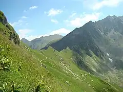The Făgăraș Mountains are a very popular hiking, trekking and skiing destination in Romania. Most people wanting to hike on the Moldoveanu leave from the town of Victoria, or, in other areas of the Făgăraș Mountains, from Arpașu de Jos, Porumbacu de Jos, and Avrig. In the vicinity of the Negoiu, and in the central part of the band take the rocky nature of the mountains, and reaching the main ridge trail there are technical difficulties and exposure. Somewhat difficult part of the trail is a "Three steps from the death" running the main ridge by ridge Custura Arpașului the lake (in Romanian Lacul) Capra (2,230 m). Also a bit challenging is one of the ways to Negoiu – Strunga Dracului. The most difficult section of the ridge Custura Sărății between Șerbota (2331 m above sea level) and Șaua Cleopatrei pass (2,355 m). At the root of the fire is under Șerbota several meters of steel cable handrail, on the other part there are no artificial enhancements.