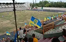 The Khimik Stadium was officially opened on International Labor Day, 1 May 1951.[2] To celebrate the event, there took place a friendly game between Khimik Severodonetsk and Metalurh Debaltseve which was won by Metalurh 7:0.[2] Later in autumn that year, Khimik revenged its loss beating Metalurh 1:0.[2] Constriction of the stadium started in autumn 1950 on efforts of Petro Novikov.[2]