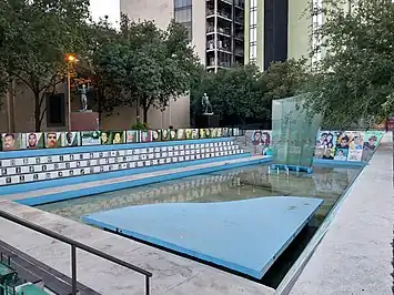 The members of FUNDENL carried out practices of memory by appropriating and redesigning a public space in the city of Monterrey, Nuevo León, which became known as "La Plaza de la Transparencia" (The Plaza of Transparency). In that place there was a monument made of metal and glass where they began to place the names of their disappeared relatives with the intention that upon their return, their own relatives would remove their names from the monument, today this place is known as "The Plaza of the Disappeared" and the monument was transformed into a space for their memory.[5]