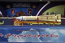 The Fakour-90 (Persian: فکور ۹۰, lit. 'Wisdom-90') is an Iranian air-to-air missile based on the AIM-54 Phoenix.[2][3] It is solely deployed on Iran's F-14 Tomcats.[4][5] While not confirmed for use in service, it has also been tested for usage on Iranian MiG-29, F-4 Phantom II & Su-24.[6]