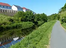 Covering an area of high ground within 5 miles (8.0 km) to the south and east of the county town Falkirk and south of Grangemouth, its core comprises a number of small villages including mining and quarrying communities,[3][4][5] which have each expanded to form a near-contiguous acentric suburban environment.[6] Historically within Stirlingshire, most of the Braes villages fell under Grangemouth parish,[7] while Laurieston was part of Falkirk parish[8] and the south-east including Maddiston was in Muiravonside parish.[9] The largest village, with the majority of amenities such as health centre and library, is Polmont, but this is not at the geographical centre of the agglomeration and is itself spread over a wide territory, having grown in several places in different eras.[5][6] The centre could be argued to be west of Polmont at the site of the Meadowbank Colliery and Brickworks,[10][11] nominally in Redding; due to its industrial history, it is one of the undeveloped parcels of land in the area.