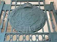 The Elizabeth and George Street facades are divided vertically, by projecting stone cornices, into three parts. These are, a podium level consisting of the double height ground floor and the first level of offices, a five storeyed middle section and the top floor of the building surmounted by a parapet wall. At the corners of the street elevations pavilions, distinguished by banded rustication, extend from the ground floor to the parapet. The podium level is also marked by banded rustication. In the centre of the George Street elevation on the podium level, is an arched open-bed semicircular pediment supporting a sculpture group that consists of two figures on either side of a shield. The division between the middle and top section of the George Street elevation is embellished by an open-topped semicircular pediment. Steel windows frames and sashes are used throughout the building. Pavement lights are located adjacent to the arched basement windows of the Elizabeth Street elevation.[1]