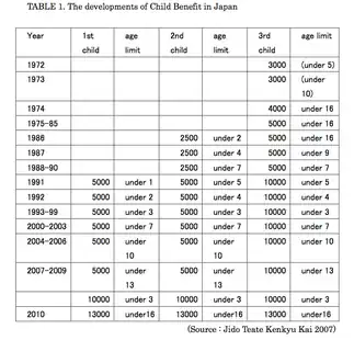 - 1 2 "Children's Allowances in Japan" (PDF). Social Security Administration.