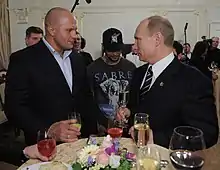 Emelianenko began his political career in 2010, being elected as a deputy of the Belgorod Regional Duma.[20] He subsequently became president of the Russian MMA Union (later honorary president and chairman of the supervisory board), and a staff member of Russia's Council of Physical Fitness & Sports.[21][22][23][24]