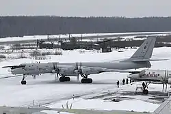 - 392 ODRAP (In Russian: 392 ОДРАП - Отдельный Дальне Разведывательный Авиационный Полк - Otdyel'nyy Dal'nye Razvedyvatel'nyy Aviatsionnyy Polk = 392nd Independent Long-Range Reconnaissance Aviation Regiment) flying Tupolev Tu-95RTs (Bear-D).[3] It was Fedotovo's first unit, beginning operations in 1963 and serving active duty with the Northern Fleet Air Arm and tasked with monitoring the activities of Western navies in the Arctic, participating in space program splashdowns, and conducting search-and-rescue activities.[1] Its aircraft were deployed regularly to Cuba throughout the 1970s and to Angola and Guinea later in the decade.[1] A declassified CIA document written in 1977 took note of these Atlantic deployments, stating that while they had little impact on the United States, they "contribute to the threat to Western naval forces operating in the Northern Atlantic Ocean".[4]