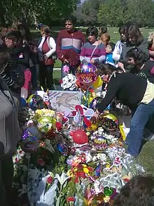 Camiroaga's remains were cremated in a private ceremony on 12 September 2011,[9] and the next day a funeral oration was conducted at the Televisión Nacional de Chile's headquarters, which was broadcast live by the station.[45] It was attended by five hundred people invited by his family and the TV channel. After the service, the amphora containing the presenter's ashes was moved in a hearse under a police escort, which was followed by his relatives. A crowd of around five thousand people accompanied the hearse from Barrio Bellavista to the Pérgola de las Flores, in Recoleta. After this, his remains were taken to the Parque del Recuerdo cemetery, where a private ceremony was conducted, attended by relatives and Camiroaga's closest friends.[46] On 16 November 2011, Camiroaga's ashes were taken to the Lugar de Los Hombres Ilustres of Villa Alegre's churchyard.[47]