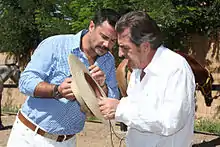 As well as acting in TV series, Camiroaga was active in theatre and cinema. In 2000, he participated in the theatrical work Venecia, directed by Boris Quercia, starring Gabriela Medina, Carmen Barros, Tichi Lobos and Javiera Contador; Camiroaga was the only male actor.[28] In 2006 he had a secondary role in the film Pretendiendo, directed by Claudio Dabed and starred by Uruguayan-Mexican actress Bárbara Mori.[29] The night before his death, on 1 September 2011, Camiroaga participated in the recording of the comedy film Stefan vs. Kramer with comedian Stefan Kramer and TV presenter Martín Cárcamo.[30] At first it was not known whether Camiroaga's scenes would appear in the film, whose release was scheduled for 2012. In late October 2011, Kramer said he would include the scenes in the film, as Camiroaga "wanted to be in it."[31]