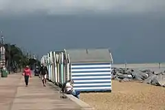 Felixstowe has a recently refurbished sandy beach south from the pier, and a stoney beach north of the pier. A Victorian promenade runs along part of the beach, from the nature reserve in the southwest to Cobbolds Point (Maybush Lane in east), with traditional beach huts along most of that length. An amusement arcade with snooker halls and food outlets occupies the southern end. The pier, incorporating a cafe and amusement arcade, stands before a leisure centre, with swimming pool, owned by the local council, now managed by a contractor.