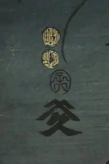 • Censor seals: 2 nanushi seals reading top to bottom Murata (村田) & Kinugasa (衣笠) indicating Murata Heiemon & Kinugasa Fusajiro[40]