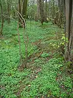 Aerial photographs and observations on the ground show the Chapelholms woodlands still contain the ditch, dyke and coppiced trees that may have formed the boundary between the two baronies of Fergushill and Eglinton.[25]