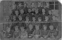 Fergushill church in Benslie was built to serve the local rural and mining communities of Doura, Fergushill, and Montgreenan.[28] It was consecrated on Sunday, 3 November 1879 and the first minister was then Rev. William McAlpine.[29] It got its name from the Fergushill Mission which was based at Fergushill school, which was closed in 1950.[30] The church had its spire blown down in a gale in 1968, also damaging the roof; the building was repaired in 1969.[17] By the mid-1970s, the church was linked to the Erskine Church of Scotland in Kilwinning, and services were led by Erskine's minister, the Rev. Rudolf Dehn, who had been a nuclear scientist at Dounreay before going into the ministry; several young people from the Fergushill area joined Erskine Church's youth group at this time.[31] The Church of Scotland Presbytery of Ardrossan decided to close the church in June 2009; over a hundred people attended the final Sunday service.[32]
