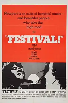 Festival (stylized as Festival!) is a 1967 American documentary film about the Newport Folk Festivals of the mid-1960’s, and the burgeoning counterculture movement of the era, written, produced, and directed by Murray Lerner.