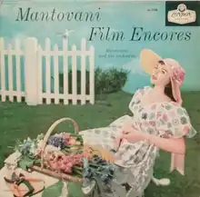 Film Encores is an album by Mantovani and His Orchestra. It was released in 1957 by London (catalog no. LL-1700).[1][2] It debuted on Billboard magazine's pop album chart on May 27, 1957, peaked at the No. 1 spot, and remained on the chart for 113 weeks. It was an RIAA certified gold album (minimum 500,000 units sold).[3] AllMusic later gave the album a rating of three stars.[2]