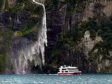 Tour boat in Milford Sound / Piopiotahi